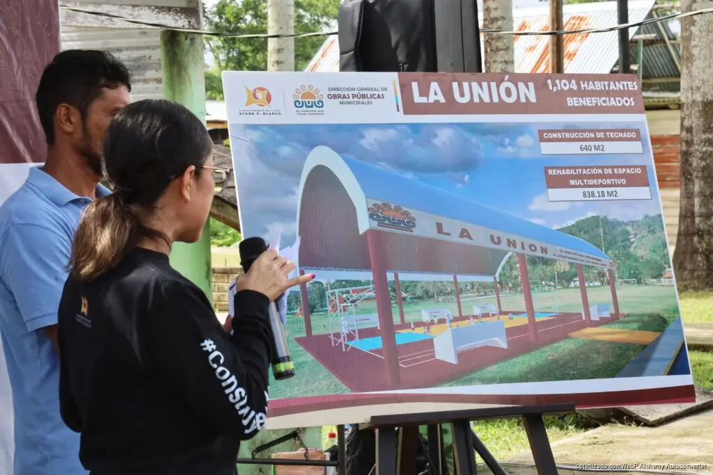 CHETUMAL, Quintana Roo,5 de Septiembre.- La presidenta municipal de Othón P. Blanco, Yensunni Martínez Hernández, dio a conocer una muy buena noticia para las familias de la comunidad de La Unión, en la ribera del Río Hondo, quienes serán beneficiadas con la construcción de un domo con espacio multideportivo.