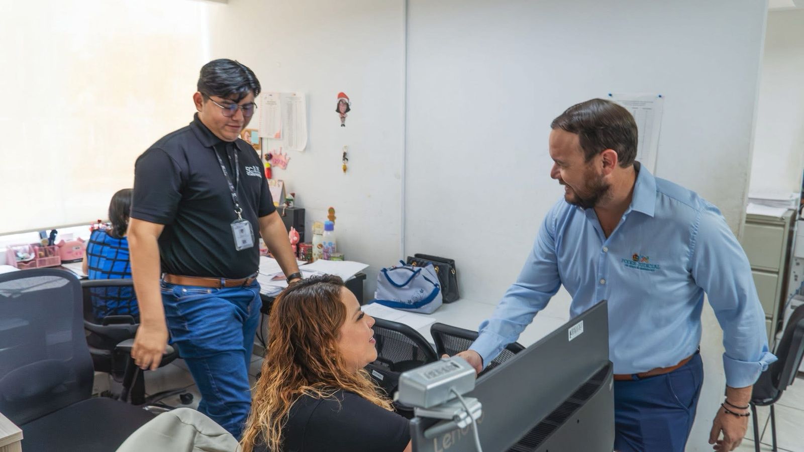 CHETUMAL, Quintana Roo, 6 de Agosto.— El Magistrado Presidente del Poder Judicial, Heyden Cebada Rivas, realizó un recorrido por el Juzgado Familiar y Civil Oral de Chetumal, donde hizo entrega de equipo tecnológico a personal administrativo y jurisdiccional.