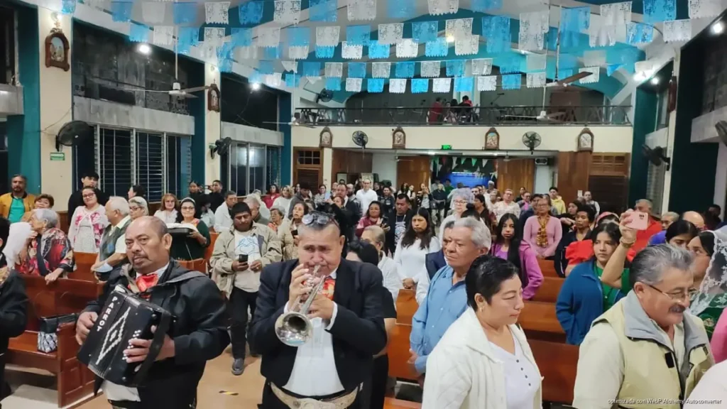 El acto estuvo acompañado por una emotiva serenata a cargo de mariachis, quienes interpretaron diversas melodías dedicadas a la Virgen, generando un ambiente solemne y festivo al interior del santuario. Los cantos y la música reforzaron el sentido de comunidad entre los asistentes, quienes participaron con respeto y fervor en cada momento de la celebración.