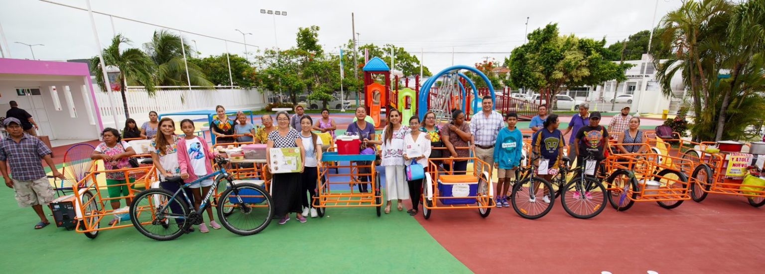 Desde computadoras y tabletas para que estudiantes no abandonen las aulas, bicicletas para que más alumnos se transporten hasta el centro escolar, triciclos para que hombres y mujeres realicen sus actividades económicas y mejoren sus ingresos, máquinas de coser para que amas de casa trabajen en su hogar, kit de uñas para emprendedoras y hasta máquinas de soldar para no cerrar el negocio, entregó esta mañana.