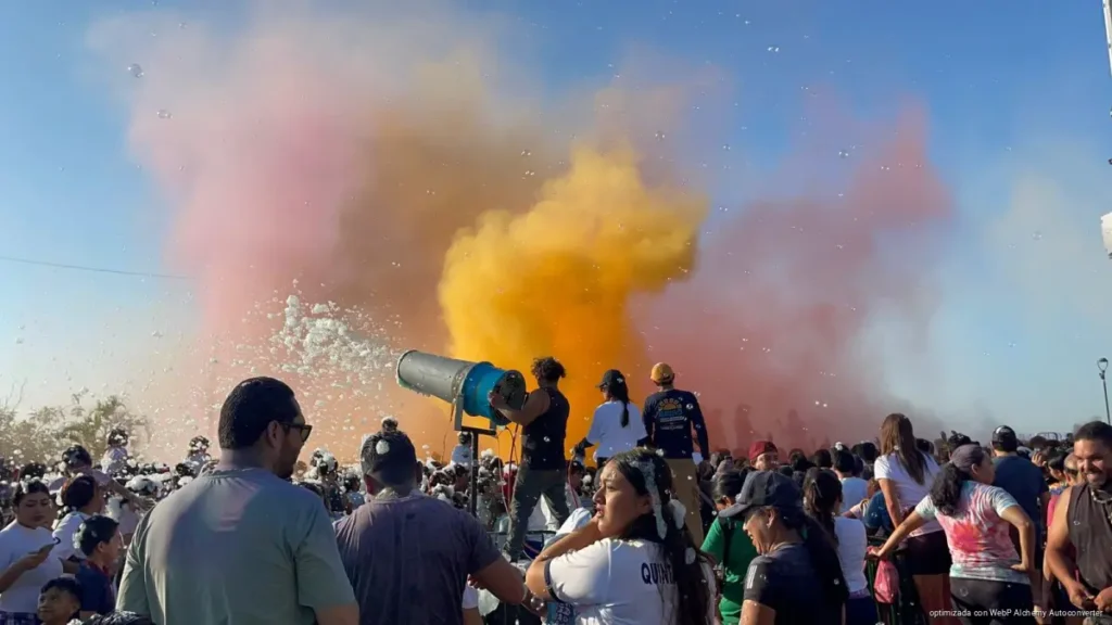 Al llegar a la Fuente del Pescador, todas y todos bailaron al ritmo del DJ Alfreo BS y festejaron junto al “Chino Fernández”, en medio de una fiesta de espuma y colores vibrantes.