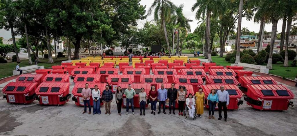 CHETUMAL, Quintana Roo, 24 de Octubre.- Acompañada de vecinas y vecinos de diferentes colonias, la presidenta municipal de Othón P. Blanco, Yensunni Martínez Hernández, hizo entrega a la Dirección de Servicios Públicos de 75 contenedores de basura para la recolección de residuos sólidos urbanos, los cuales serán colocados en distintos puntos de la ciudad capital.