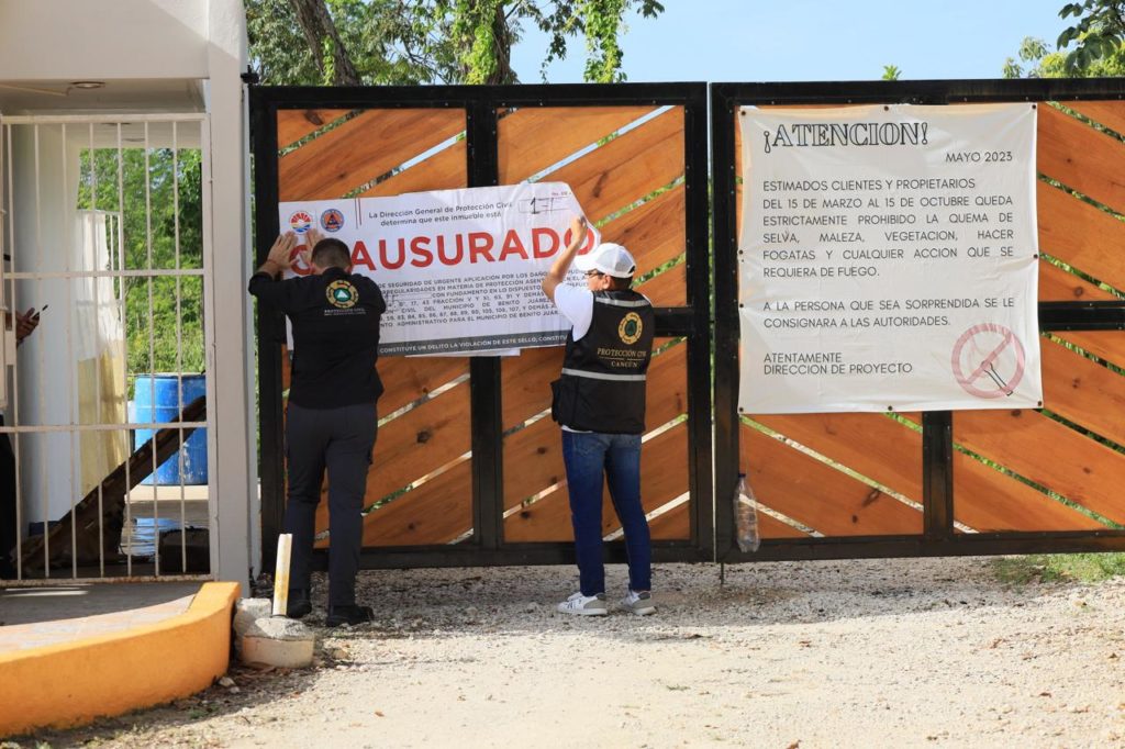En un acto de autoridad del gobierno de la Presidenta Municipal, Ana Paty Peralta, conforme sus atribuciones, la Secretaría Municipal de Ecología y Desarrollo Urbano, en conjunto con la Secretaría General, la Dirección de Ecología y la Dirección de Protección Civil del Ayuntamiento de Benito Juárez, así como la Procuraduría de Protección al Ambiente (PPA), impusieron sellos de clausura a un desarrollo urbano irregular, que ofrece en venta terrenos en la zona este de la ciudad, por incurrir en violaciones a la Ley de Asentamientos Humanos, Ordenamiento Territorial y Desarrollo Urbano del Estado de Quintana Roo.
