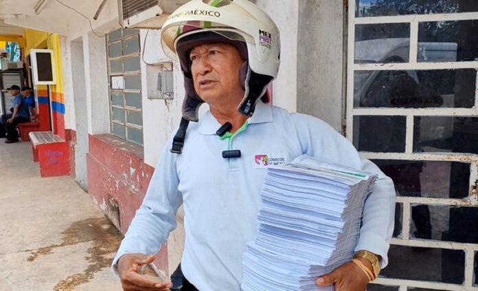 La crisis tiene nombre y rostro: Marcelo Kú Pantoja, jefe de la oficina postal en el municipio, quien con más de 20 años de experiencia se ha convertido, en la práctica, en el único trabajador encargado de clasificar, organizar y repartir miles de documentos, incluidos los recibos de energía eléctrica.
