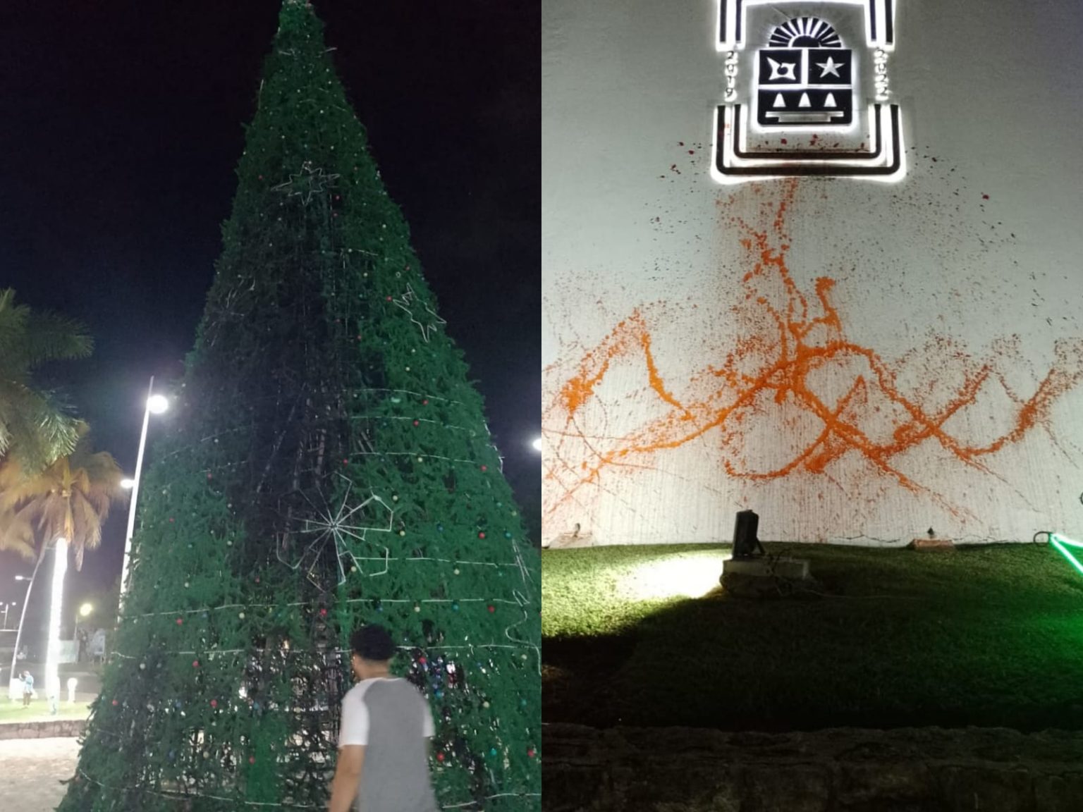 “El arbolito de Navidad” fue quemado de manera parcial, aunque la pérdida es total, las paredes fueron vandalizadas con pintura de aerosol.