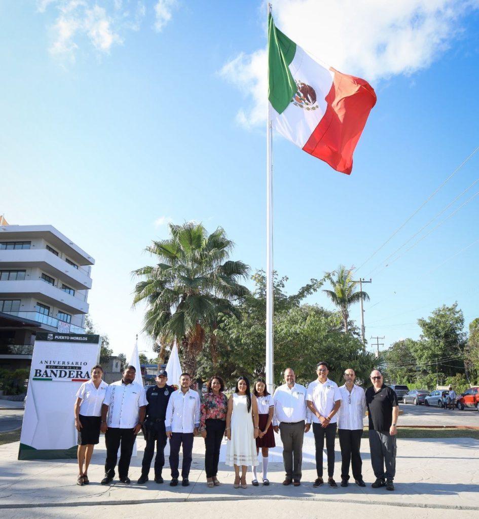 En la ceremonia, que se llevó a cabo en la Plaza Cívica ubicada frente al Palacio Municipal, también participaron integrantes del Cabildo, secretarios, directores y servidores públicos en general y el Trío Musical de Puerto Morelos.
