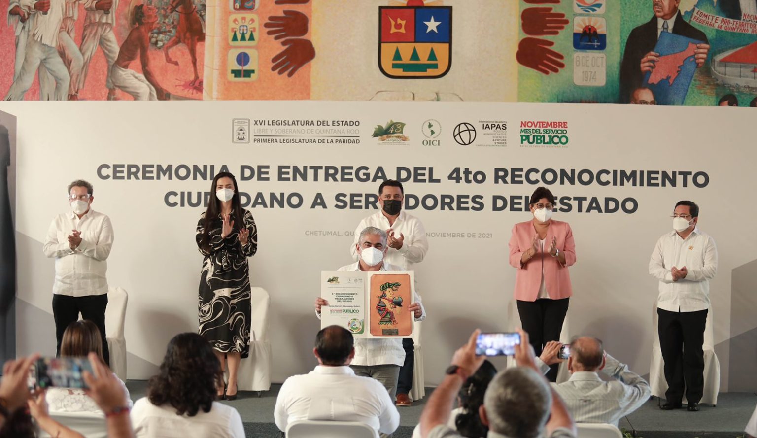 CHETUMAL, Quintana Roo, 23 de noviembre. – El Congreso del Estado de Quintana Roo fue sede de la ceremonia de entrega del Cuarto Reconocimiento Ciudadano a Servidores del Estado, donde la propia ciudadanía postula y reconoce la invaluable labor de servidores públicos del estado en activo o jubilados, destacados por su vocación de servicio, capacidad técnica y su sensibilidad para atender a la ciudadanía brindando servicios públicos de calidad a los quintanarroenses.