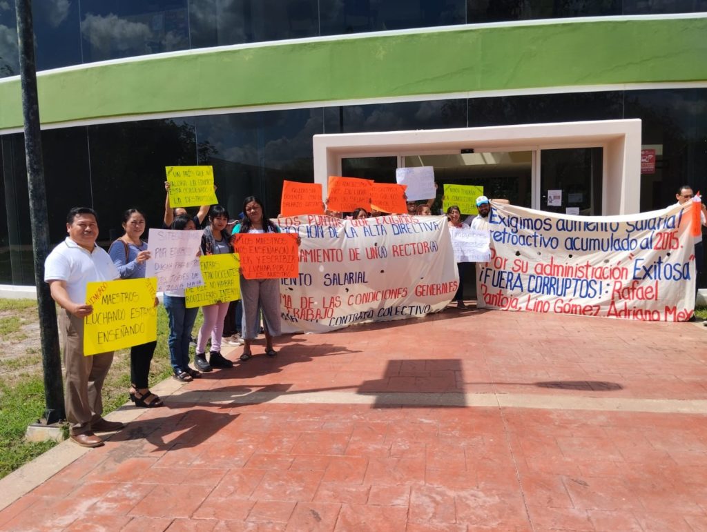 Los inconformes mencionaron que, desde hace 8 años, han emprendido una lucha por la defensa de sus derechos como trabajadores. Entre sus peticiones razonables y legales está la del aumento salarial, pues desde hace 8 años ganan lo mismo, la remoción del cuestionado encargado de la rectoría Rafael Pantoja y su administrador.