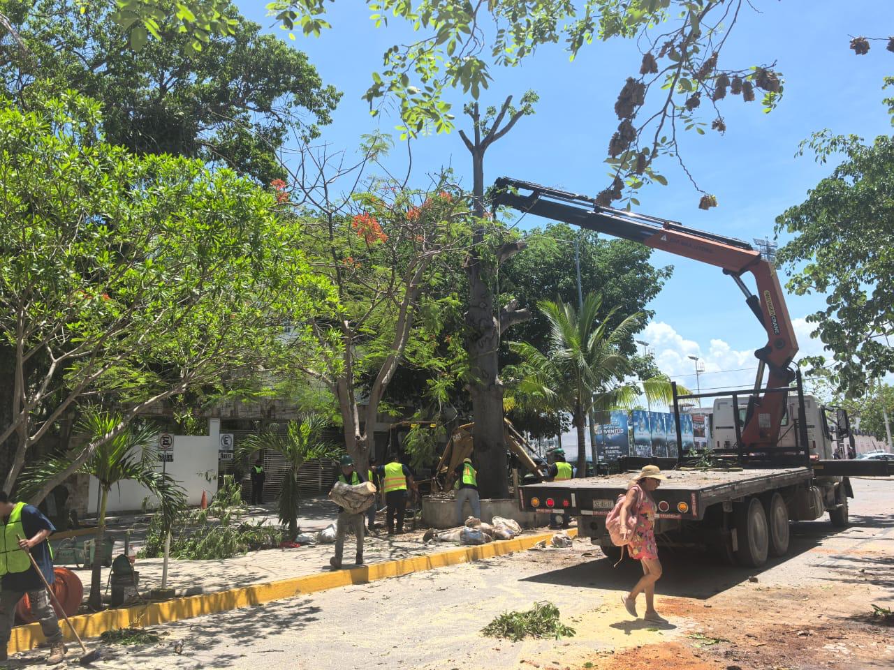 PLAYA DEL CARMEN, Quintana Roo, 16 de Julio.- Tras el reporte ciudadano sobre una ceiba inclinada, que corría el riesgo de caer sobre la calle 10 con avenida 38, la Asociación Civil Riviera Maya Sostenible, Donante Anónimo y Coral Diamante en coordinación con la Secretaría de Medio Ambiente Sustentable y Cambio Climático realizaron la restauración y rehabilitación del ejemplar de varios metros de altura.