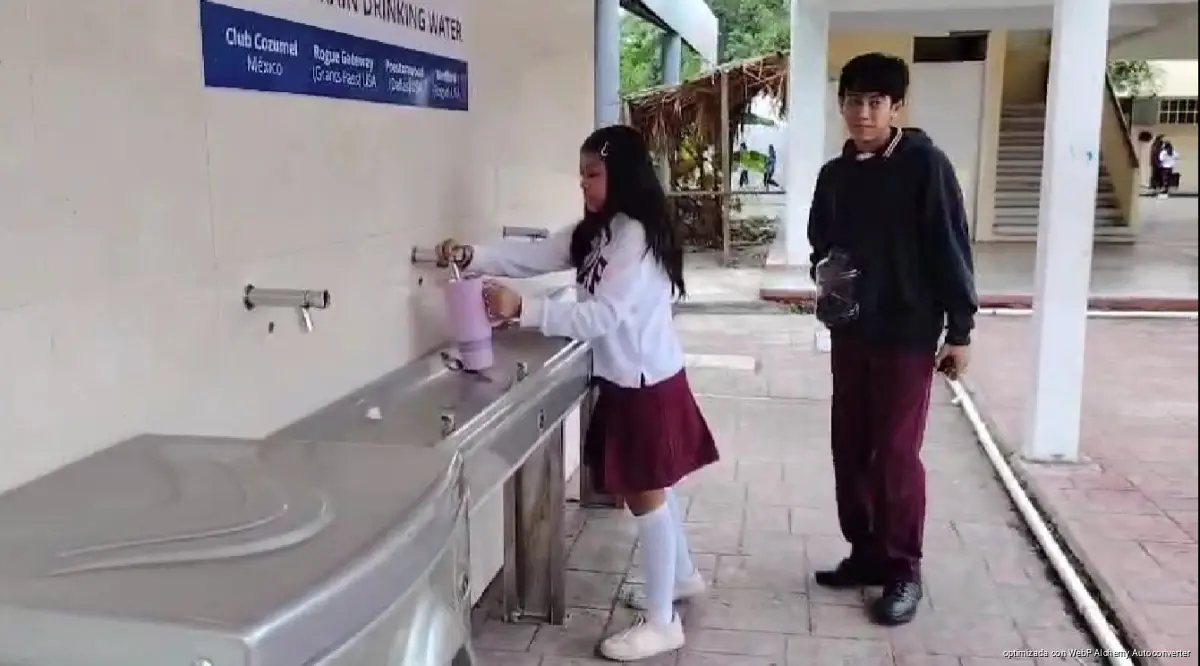 COZUMEL, Quintana Roo, 23 de enero de 2026.- La escuela secundaria técnica José Vasconcelos se ha consolidado como la única en Cozumel que opera el programa “Agua de lluvia para beber”, iniciativa que permite un ahorro aproximado de 60 pesos semanales por estudiante al evitar la compra de agua purificada embotellada, además de reducir el consumo de plásticos de un solo uso.