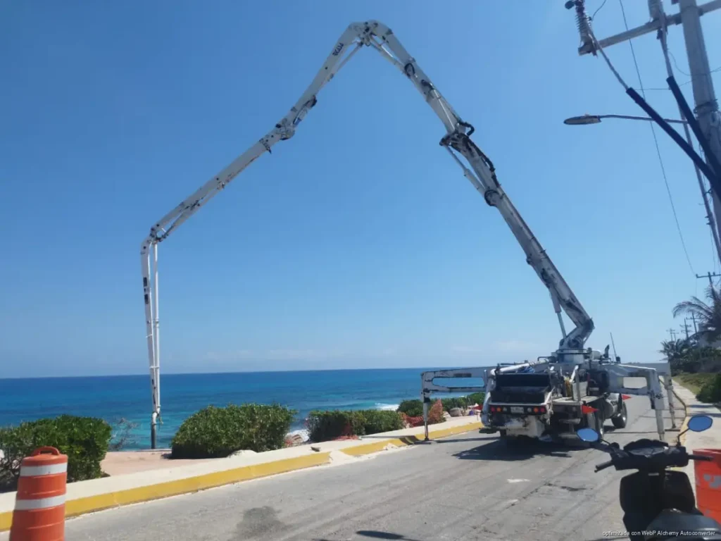 ISLA MUJERES, Quintana Roo, 18 de febrero de 2026.- Luego de registrarse varios desprendimientos de piedra caliza en el acantilado frente al mar Caribe, el Ayuntamiento de Isla Mujeres inició trabajos de rehabilitación en uno de los puntos más afectados, ubicado frente a los condominios Isla 33, donde permanece cerrado el paso vehicular como medida preventiva.