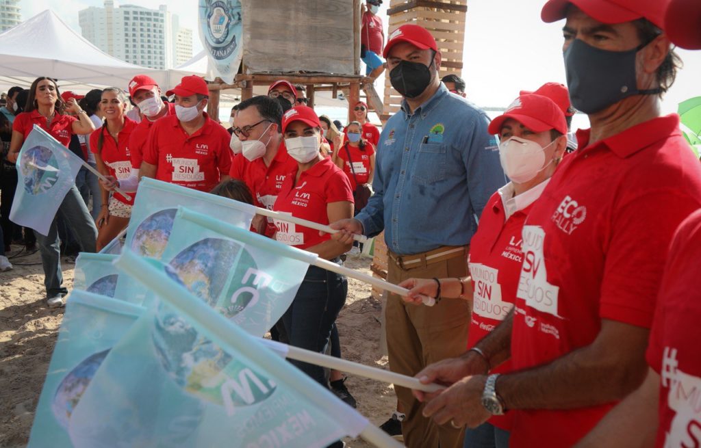 En la limpieza de Playa Gaviota también estuvieron presentes Agustín Menéndez, gerente de Asuntos Corporativos Bepensa; Jorge Treviño, director general ECOCE; Sergio Londoño, vicepresidente Asuntos Públicos, Comunicación y Sustentabilidad Coca Cola México.