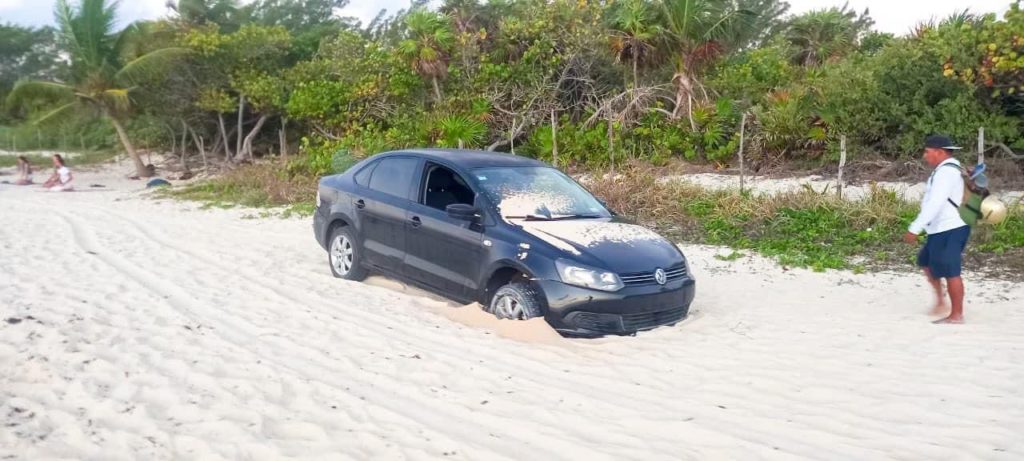 Fue el fin de semana que circuló la imagen de un Volkswagen tipo Jetta, en la zona de playas, por lo que la secretaria de Medio Ambiente y encargada de la Zona Federal Marítimo Terrestre informó que ingresó por el acceso de Playa 88, pero ya no lo pudieron sacar y lo dejaron.