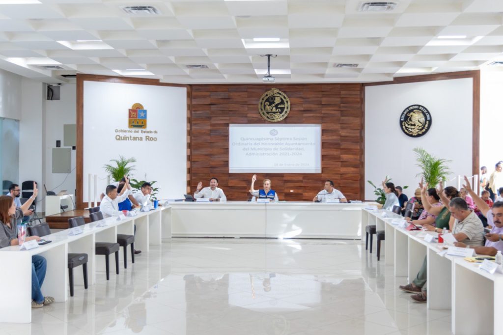 Playa del Carmen, Quintana Roo, 19 de enero del 2024.- En la quincuagésima séptima Sesión Ordinaria del Ayuntamiento de Solidaridad, presi dida por Lili Campos, se aprobaron beneficios para la regularización y tenencia de la tierra, y dar certeza jurídica a las familias de Cristo Rey.