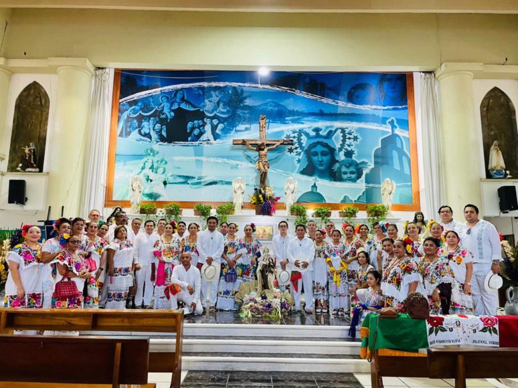 La conmemoración que contó una misa de acción de gracias, bendición de escapularios y el tradicional baile de “Cabeza de cochino”, fue encabezada por el secretario general, Luis Herrera Quiam, posteriormente la Alcaldesa de Solidaridad, Lili Campos Miranda se unió al festejo como invitada especial.