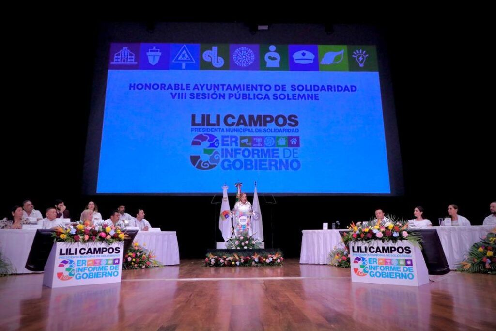 PLAYA DEL CARMEN, Quintana Roo, 17 de Septiembre.-Ante las y los solidarenses, la presidenta municipal Lili Campos rindió su Tercer Informe de Gobierno, donde afirmó dejar avances significativos en diversos ámbitos, destacando la seguridad como uno de los pilares fundamentales en la gestión. “Hemos cumplido con hechos para que en cada colonia y en cada hogar de Solidaridad se vean reflejados los resultados. Unidos renovamos Solidaridad y lo seguiremos haciendo”.