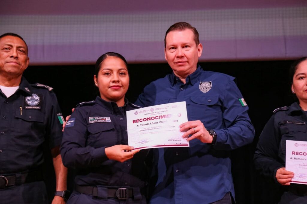 Como parte del acto de clausura, el secretario de Seguridad Ciudadana Carlos Alberto Montesinos García encabezó la entrega simbólica de reconocimientos a los elementos de la corporación que concluyeron la capacitación.