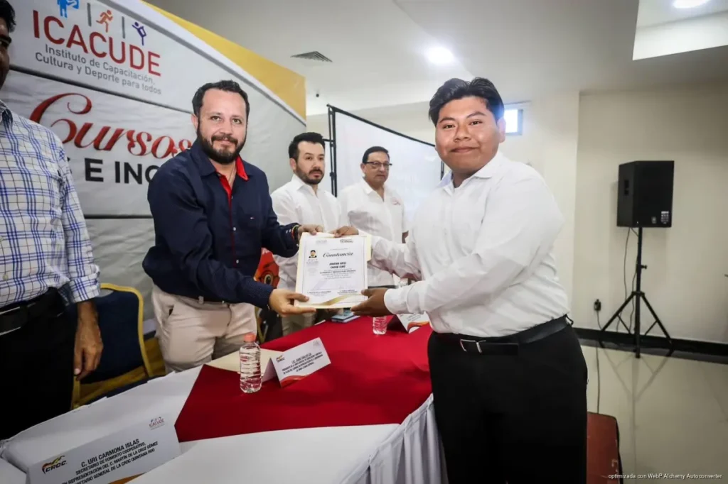 PLAYA DEL CARMEN, Quintana Roo, 07 de marzo de 2026.– Trabajadoras y trabajadores concluyeron la XIV generación de los cursos de Alimentos y Bebidas e Inglés, en un acto de clausura donde recibieron constancias que avalan las habilidades y conocimientos adquiridos durante su proceso de capacitación.