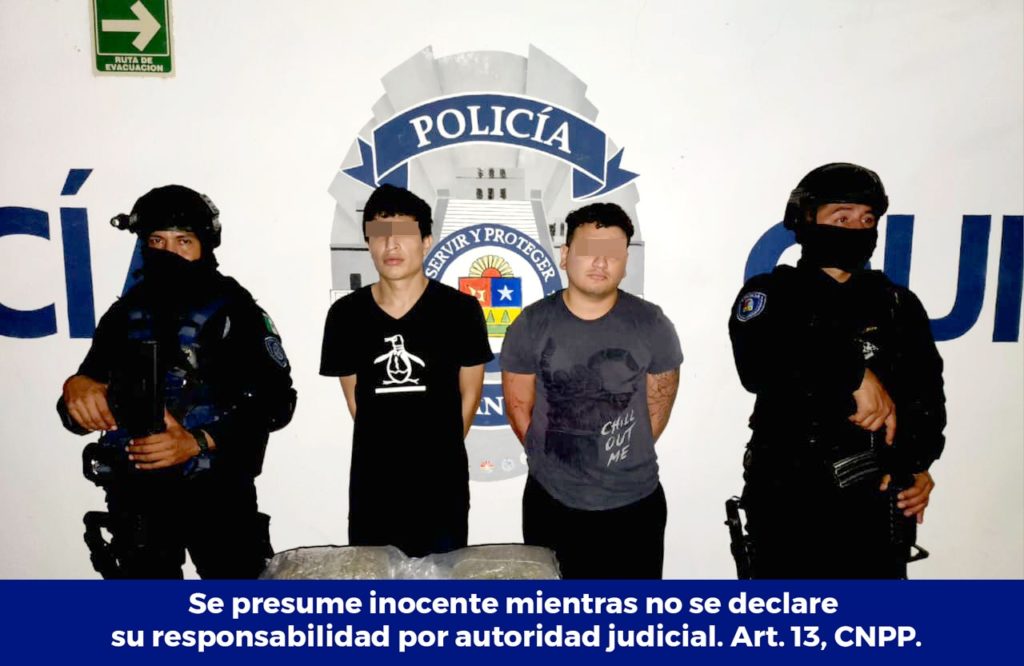 Playa del Carmen, Quintana Roo, 11 de febrero. – Los elementos observaron a dos personas en un auto Seat de color blanco que estaban intercambiando un paquete transparente que en su interior contenía vegetal verde con las características de marihuana, quienes, al darse cuenta de la presencia de la autoridad, intentaron emprender la huida.