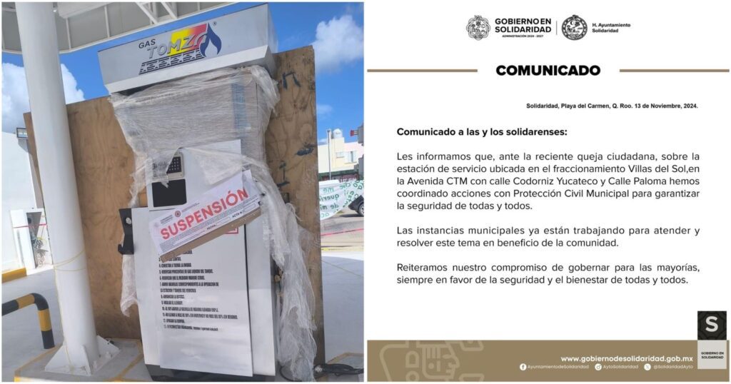 CHETUMAL, Quintana Roo,13 de Noviembre. — Tras una reciente queja ciudadana sobre la estación de servicio ubicada en el fraccionamiento Villas del Sol, en la Avenida CTM con calle Codorniz Yucateco y Calle Paloma, la presidenta municipal de Solidaridad, Estefanía Mercado, se pronunció al respecto a través de sus redes sociales, informando que se han coordinado esfuerzos con Protección Civil para garantizar la seguridad de la comunidad.