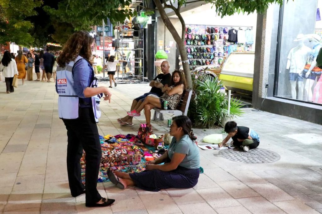 Playa del Carmen, Quintana Roo, 27 de diciembre. – Con el objetivo de concientizar a las y los visitantes sobre el trabajo infantil y buscar su prevención, el Gobierno de Solidaridad, que encabeza la presidenta municipal Lili Campos, a través del DIF Municipal, lleva a cabo acciones en la zona turística durante la temporada vacacional, con la distribución de folletos informativos.