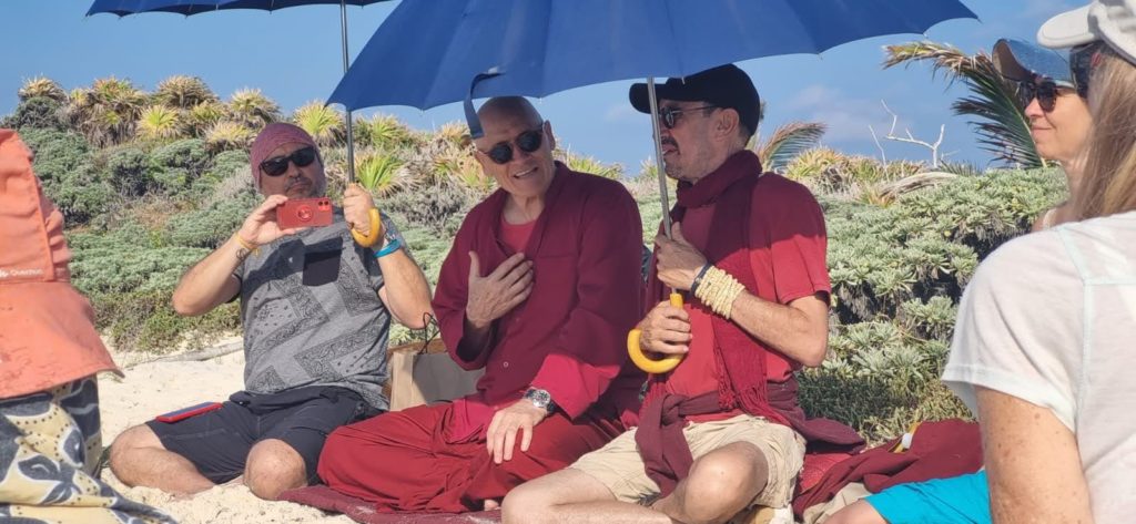 Cozumel, Quintana Roo, 14 de marzo. – Para lograr la transformación social y el cambio profundo que se ha propuesto en Quintana Roo, así como sobre la importancia del cuidado del medio ambiente, la Fundación de Parques y Museos de Cozumel (FPMC) recibió en el Parque Ecoturístico Punta Sur al Venerable Lobsang Zopa, quien dirigió la jornada de meditación activa llamada “Huellas de Conscincia”, con la participación de 30 personas.