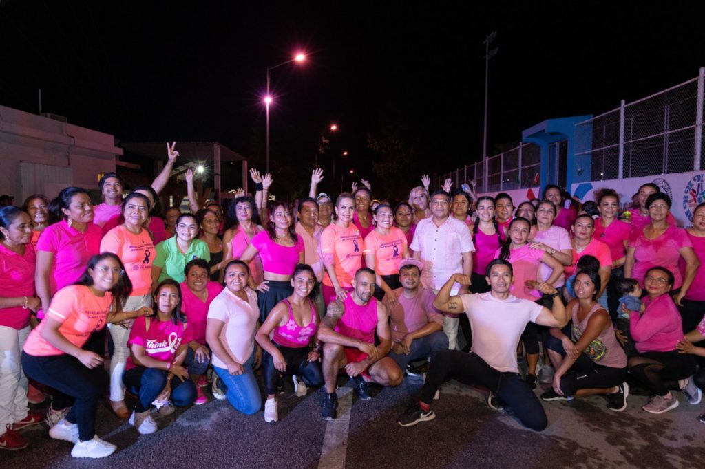 Playa del Carmen, Quintana Roo, 20 de octubre. – En conmemoración del “Día Internacional de la lucha contra el Cáncer de Mama”, y para incentivar su prevención en las mujeres solidarenses, el gobierno que encabeza la presidenta Lili Campos realizó mega clase de activación física y encendido rosa.