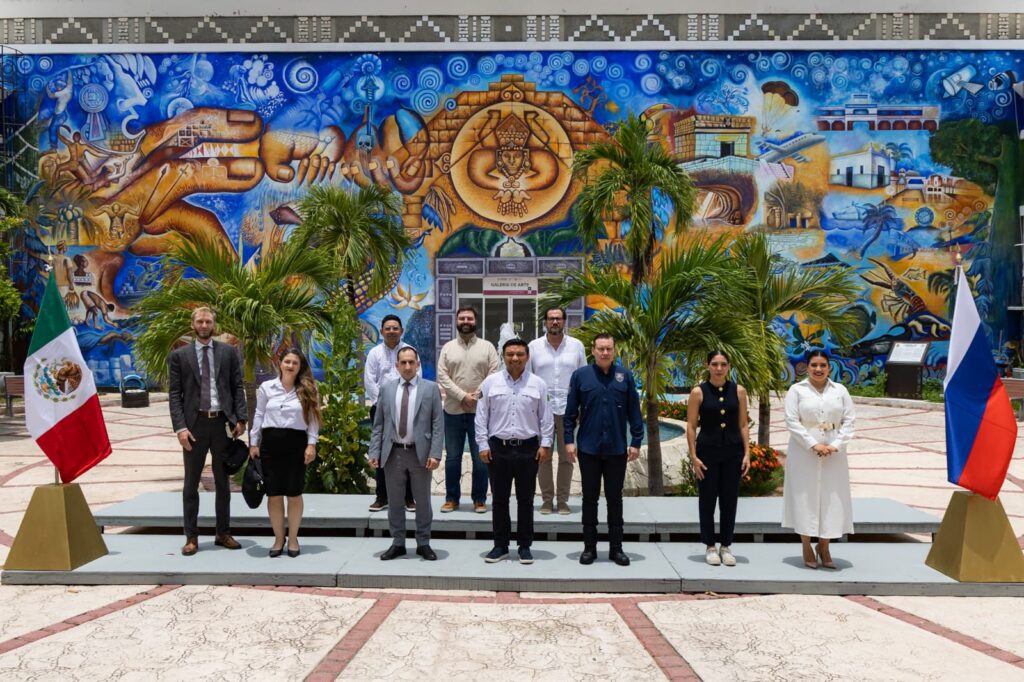PLAYA DEL CARMEN, Quintana Roo,08 de Agosto– Con el objetivo de consolidar relaciones internacionales y generar nuevas oportunidades de cooperación en materia turística, económica y de seguridad, autoridades municipales sostuvieron una reunión de cortesía con el cónsul de la Federación de Rusia en México, Iakov Fedorov; la cónsul honoraria en Quintana Roo, Anna Plekhanova, y el tercer secretario de la Embajada Rusa, Gordei Iakovlev.