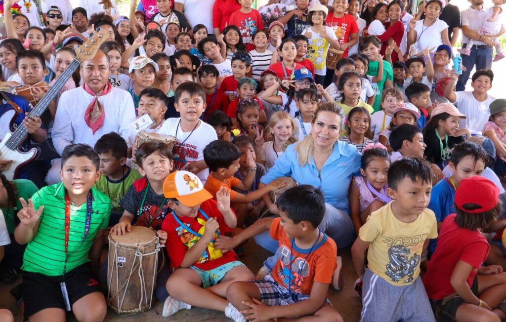 PLAYA DEL CARMEN, Quintana Roo, 15 de Agosto.- La presidenta municipal, Lili Campos, compartió una mañana llena de alegría con cientos de niños del curso de verano Baxal Paal, disfrutando de un concierto musical ofrecido por el grupo “Raíces” del Instituto Municipal de la Cultura y las Artes (IMCAS) en la Palapa del DIF Solidaridad.