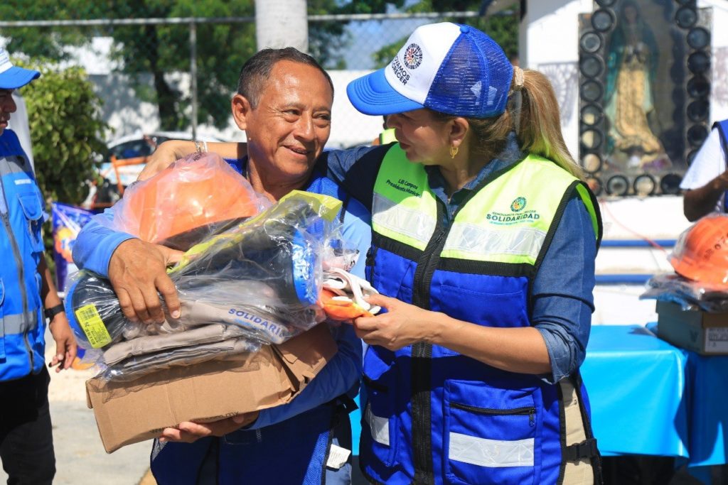 Playa del Carmen, Quintana Roo, 15 de noviembre. – La presidenta Lili Campos y el secretario Benny Millán entregaron uniformes para 55 colaboradores de las direcciones de Alumbrado Público y Normatividad y Saneamiento Ambiental, con el objetivo de hacer eficiente y garantizar su seguridad al momento de realizar su labor.