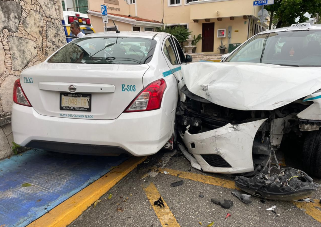 El hecho ocurrió alrededor de las 2:00 de la tarde cuando el conductor de un taxi Nissan Versa, con número E303, circulaba en dirección hacia el sur sobre la avenida 15, con preferencia de paso y al llegar a la calle 14, el chofer de otra unidad con número 2089, no hizo su alto al conducir a exceso de velocidad.
