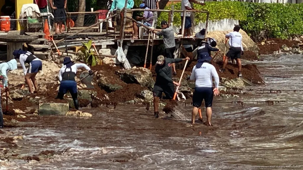 El funcionario señaló que las brigadas mantienen trabajos diarios para evitar la acumulación masiva del alga y reducir afectaciones a la imagen turística del destino, especialmente ante la alta afluencia de visitantes.