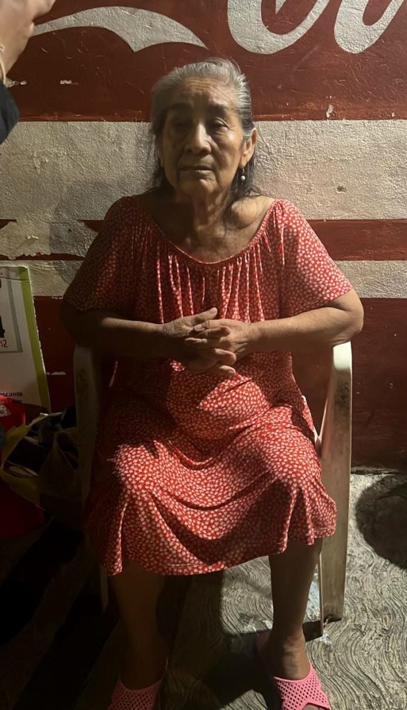 Al acercarse a ella, oficiales del Grupo Especializado de Atención a la Violencia Familiar y de Género de Solidaridad, refirió buscar a su hijo de nombre Hermenegildo Yah Martín, quien vive aquí, sin embargo, no cuenta con su número telefónico, domicilio ni más referencias.