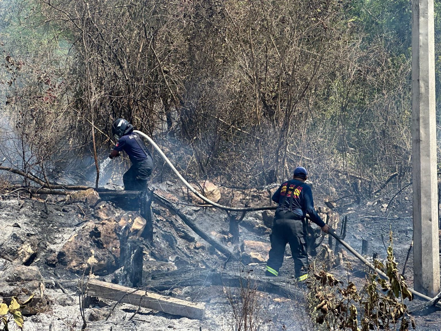 Hecha la tarea, los tragahumo volvieron a su base, sin reportar daños a la red eléctrica, toda vez que sólo se consumió maleza.