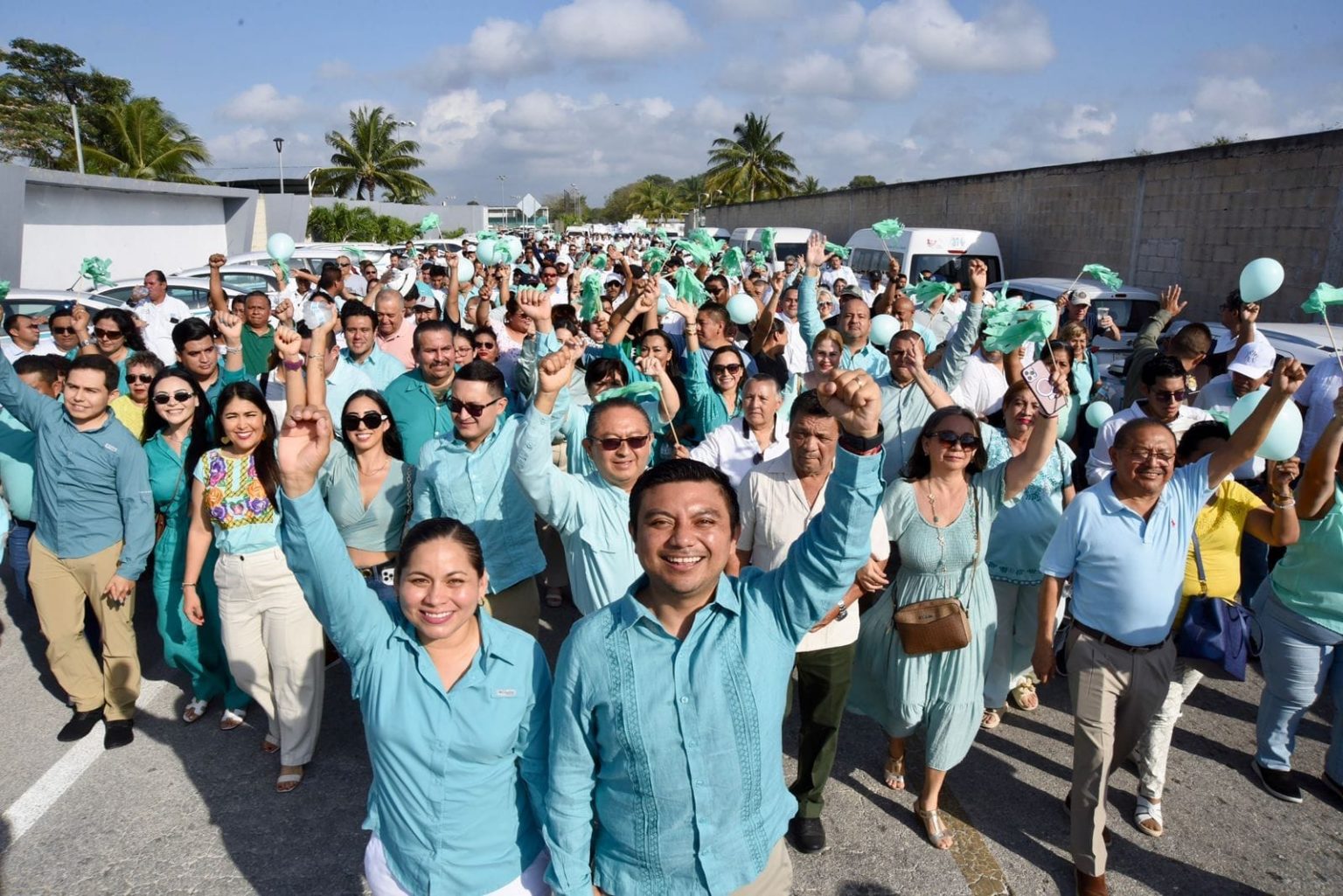 Playa del Carmen, Quintana Roo, 16 de marzo del 2024. – Cientos de taxistas, entre los que se encontraban socios concesionarios y operadores, acompañaron al líder sindical para la inscripción de su planilla “Verde Turquesa”, refrendando su confianza a la persona que aseguran trabaja por el bienestar de la familia taxista.