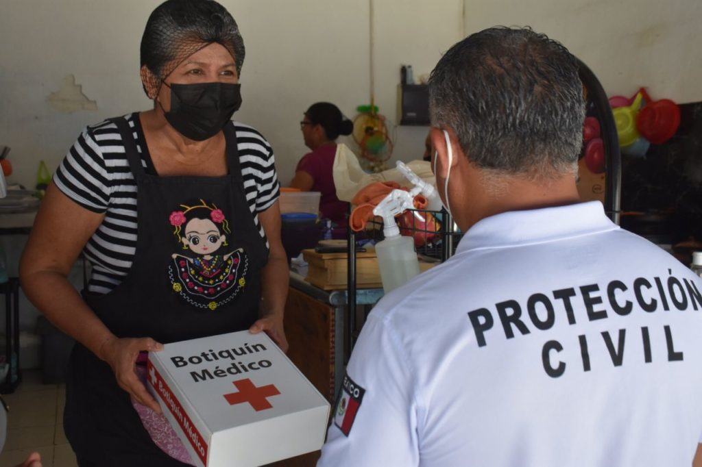 TULUM, Quintana Roo, 27 de julio. – Con el objetivo de reforzar las medidas de prevención, la Coordinación de Protección Civil del Ayuntamiento de Tulum entregó 200 botiquines de primeros auxilios a comerciantes y vendedores.