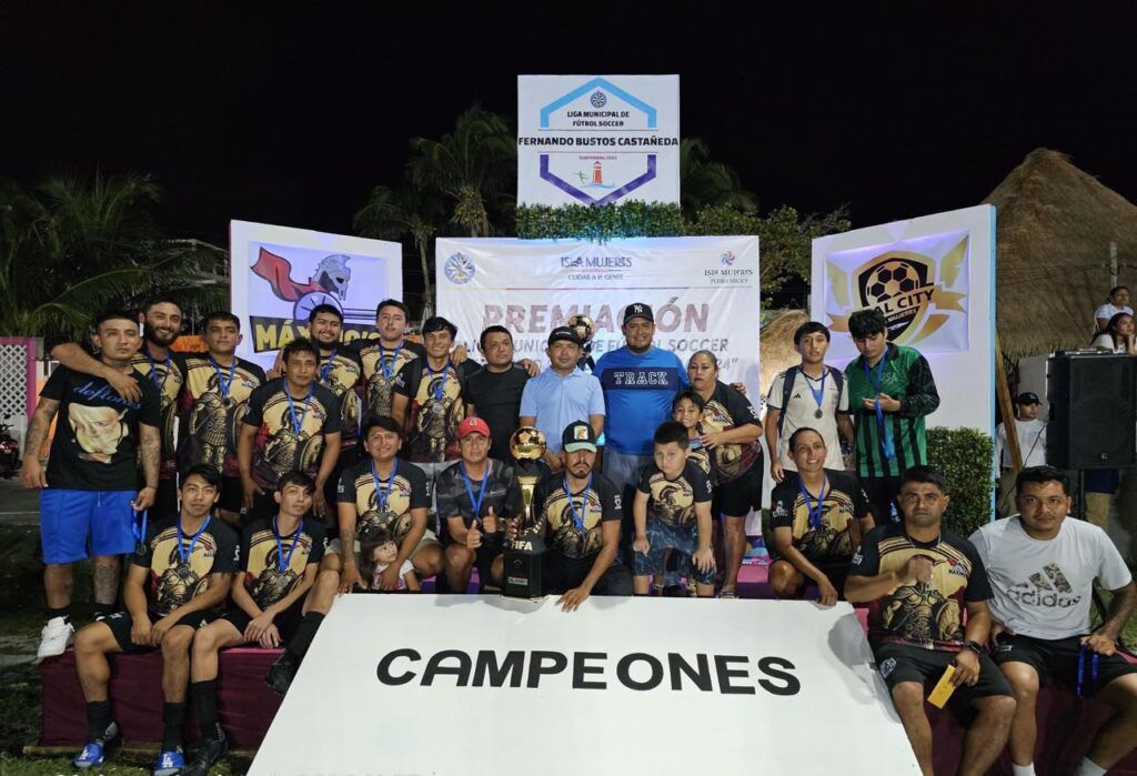 ISLA MUJERES, Quintana Roo, 21 de Septiembre.- El gobierno municipal que encabeza la Presidenta Municipal, Atenea Gómez Ricalde, busca fomentar la sana convivencia entre la sociedad isleña a través del deporte, por ello anoche se celebró la final de la Liga Municipal de Fútbol Soccer “Fernando Bustos Castañeda”, en el campo de la colonia Salina Chica, donde Real City se coronó campeón.