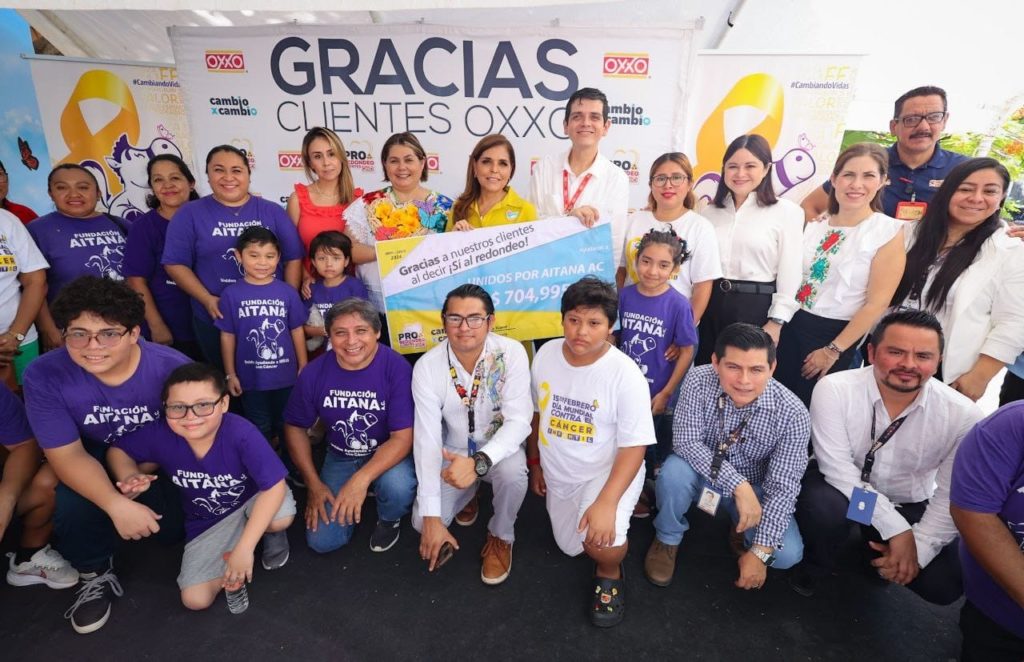 PLAYA DEL CARMEN, Quintana Roo, 27 de Julio.- La presidenta de la fundación Aitana, Yusi Dazib, agradeció el esfuerzo de la empresa Oxxo, por la aportación de 704 mil 995.60, la cual será dirigida a los tratamientos oncológicos del Hospital Estatal en esta especialidad, en la ciudad de Chetumal, dado que la recaudación servirá de gran ayuda para los diferentes servicios que brinda este centro médico.