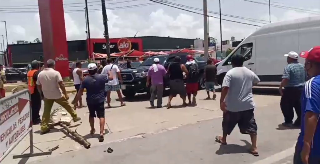 Luego de ser desplazados de la zona de invasión, los inconformes tomaron el cruce de la avenida Tulum, con avenida Cobá bloqueando la carretera federal 307, en el tramo Tulum-Playa del Carmen.