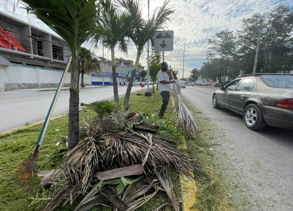 PLAYA DEL CARMEN, Quintana Roo, a 22 de octubre del 2021.- En cumplimiento de las instrucciones de la presidenta Lili Campos Miranda, se avanza en la limpieza de las áreas públicas y vialidades del municipio, que incluye labores de descacharrización, recolecta de basura, poda de árboles y mantenimiento de alumbrado público en Solidaridad.