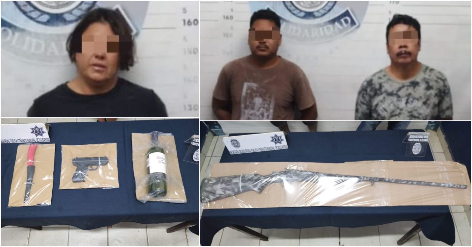 Playa del Carmen, Quintana Roo, 04 de enero de 2024. – Elementos de la Policía Municipal de Solidaridad realizaron la detención de 3 personas en 2 hechos distintos y el aseguramiento de un arma de fuego y una réplica de arma, durante el operativo de vigilancia permanente para disuadir delitos.