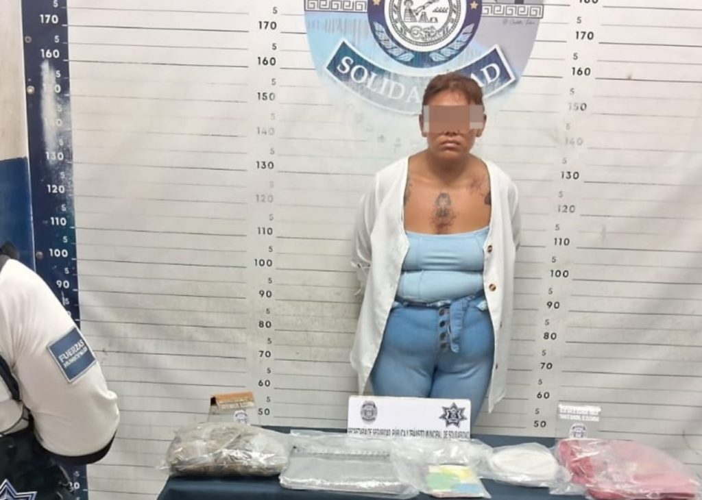 Los oficiales de la Policía Turística detuvieron a Sara “N” de 25 años de edad, originaria de Quintana Roo en posesión de 47 envoltorios con posible marihuana, 7 con lo que parece la droga llamada piedra y 9 con el posible narcótico conocido como cristal tras sorprenderla manipulando los envoltorios, sentada en una motocicleta estacionada sobre la calle 106 con avenida 40.