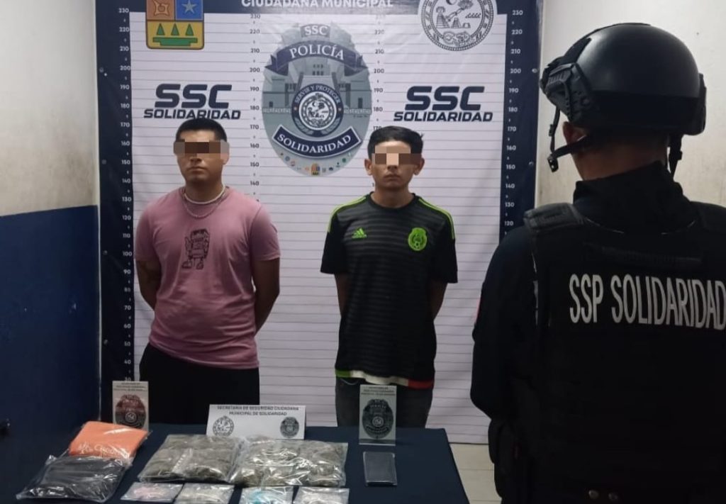 Playa del Carmen, Quintana Roo, 22 de abril de 2024. – La Policía Municipal de Solidaridad detuvo a 2 personas posiblemente relacionadas al narcomenudeo y aseguró 65 posibles dosis de droga en el fraccionamiento Las Palmas I.