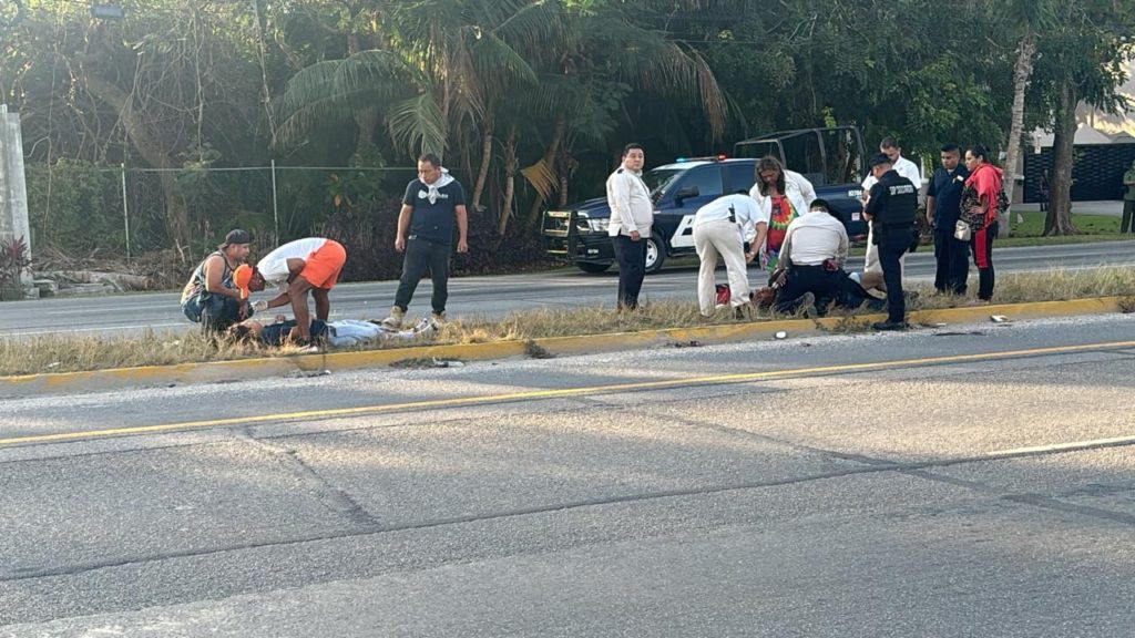 Playa del Carmen, Quintana Roo, 28 de febrero de 2024. – Dos personas son trasladadas de urgencia al Hospital General y al IMSS número 18, ambos en Playa del Carmen, tras registrarse un accidente sobre la carretera federal 307 a la altura del Hotel El Dorado.