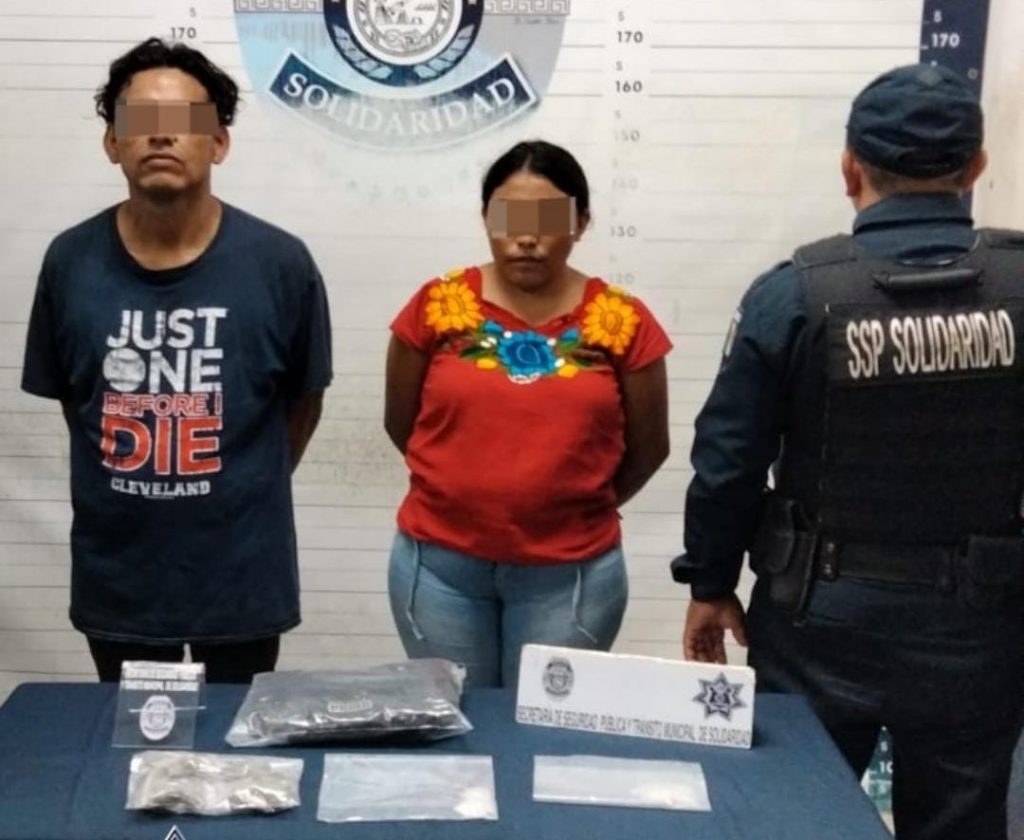 PLAYA DEL CARMEN, Quintana Roo, 11 de octubre. – La Policía Municipal de Solidaridad aseguró a una mujer y un hombre en posesión de posibles narcóticos como marihuana y metanfetamina durante el operativo de vigilancia en la colonia In House que se lleva de manera permanente.