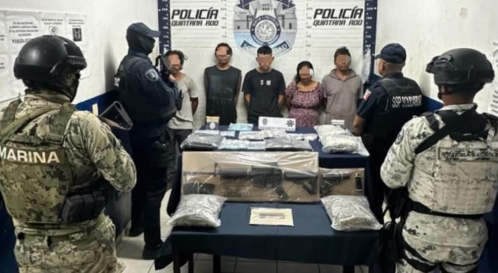 Playa del Carmen, Quintana Roo 18 de enero de 2024. – La Policía Municipal de Solidaridad realizó la detención de 8 personas en 3 hechos distintos, aseguró 2 armas de fuego y más de 240 posibles dosis de narcóticos, como resultado del operativo coordinado “Colonia Segura” dirigido a prevenir el delito, mantener presencia y cercanía con los ciudadanos.