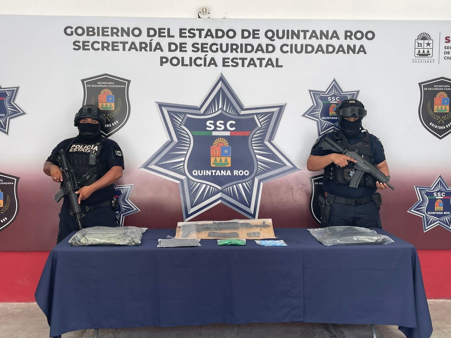 Chetumal, Quintana Roo, 15 de julio. – La Secretaría de Seguridad Ciudadana (SSC), aseguró narcóticos y arma de fuego en la avenida Luis Echeverría, del poblado de Pucte.