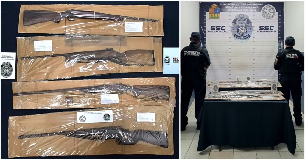 PLAYA DEL CARMEN, Quintana Roo,27 de Noviembre. –Como parte de los esfuerzos para reforzar la seguridad en la región, la Secretaría de Seguridad Ciudadana Municipal (SSC), en coordinación con la Secretaría de Seguridad Ciudadana de Quintana Roo, logró el aseguramiento de cuatro escopetas y al menos cinco cartuchos en un operativo llevado a cabo en la colonia Vida y Esperanza.