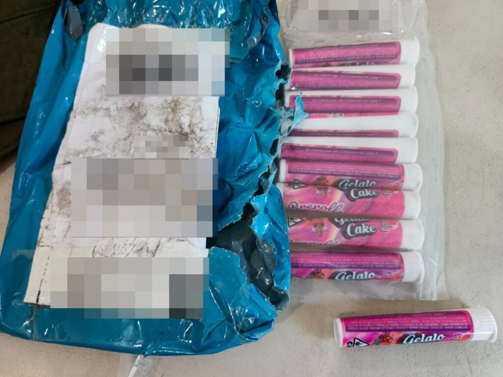 En el interior del paquete se localizaron 10 recipientes cilíndricos, de color blanco con rosa y con la leyenda “Gelato Cake”, los cuales fueron asegurados y puestos a disposición de la Fiscalía General del Estado para las investigaciones correspondientes.