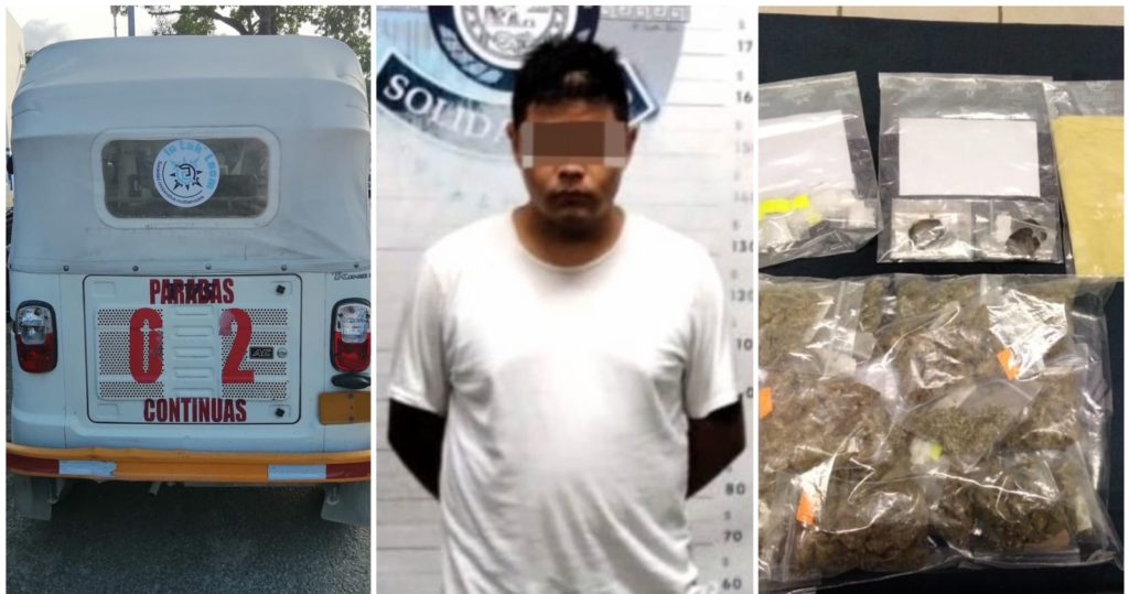 Durante la noche sobre la avenida CTM con Libramiento, los Policías Preventivos observaron junto a un mototaxi con número económico 02, a un sujeto contabilizando envoltorios con lo que parecía ser droga.